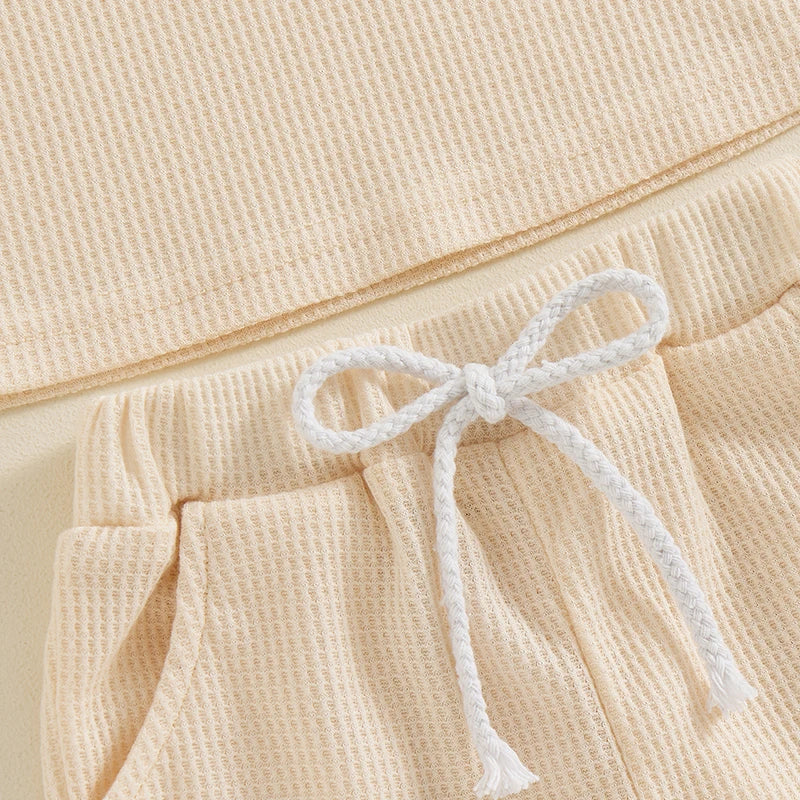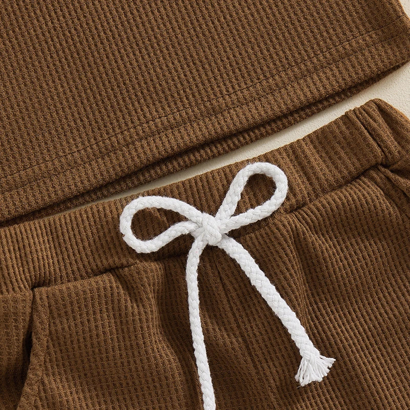 This set features a cozy Waffle Fuzzy Letter Embroidered T-shirt paired with pocket shorts, creating a casual tracksuit ensemble that's perfect for active boys.?