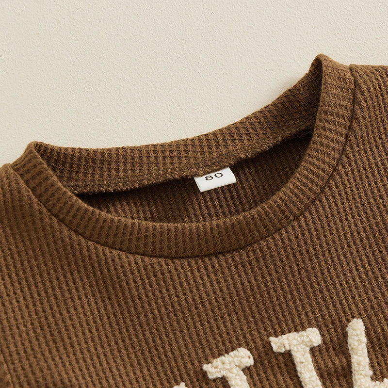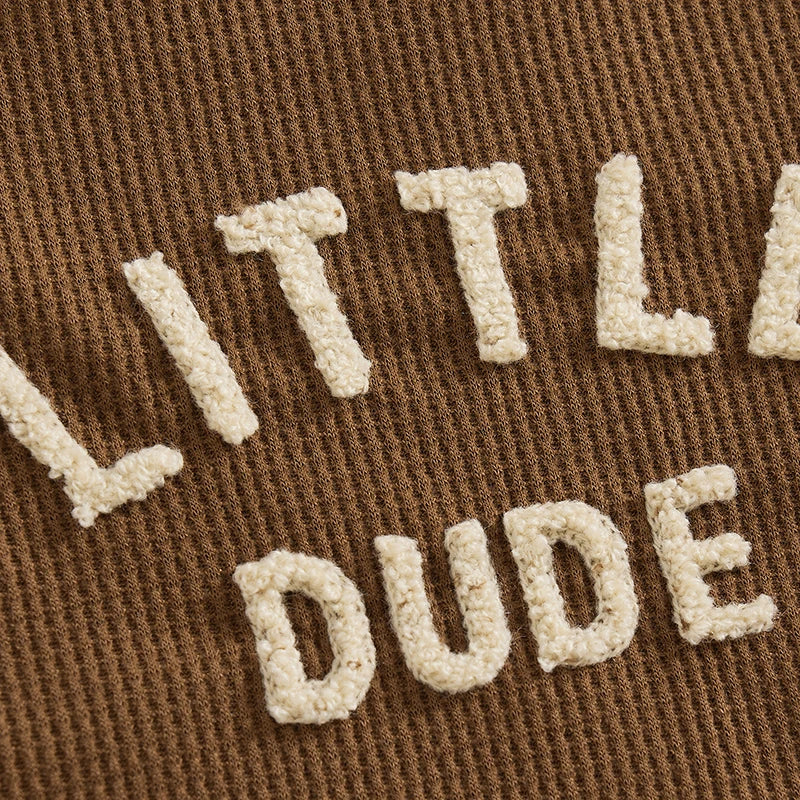 This set features a cozy Waffle Fuzzy Letter Embroidered T-shirt paired with pocket shorts, creating a casual tracksuit ensemble that's perfect for active boys.?