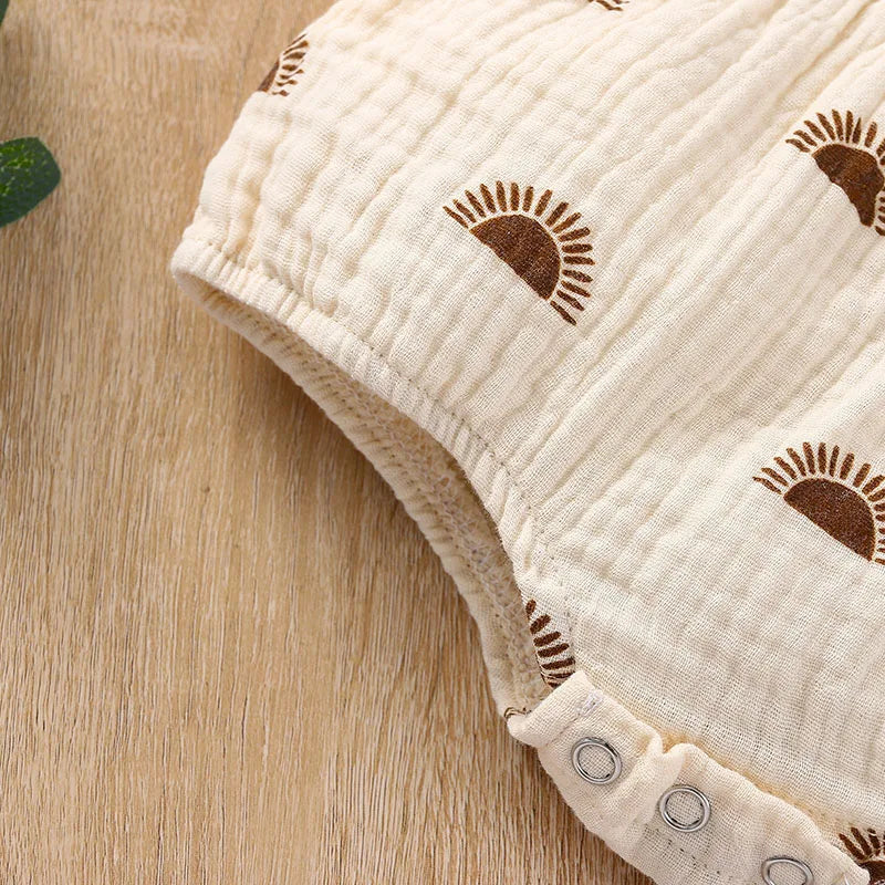Whether it's a day at the beach or a casual outing with family, our Sun Printed Suspender Rompers are the perfect choice for your child's summer clothing.