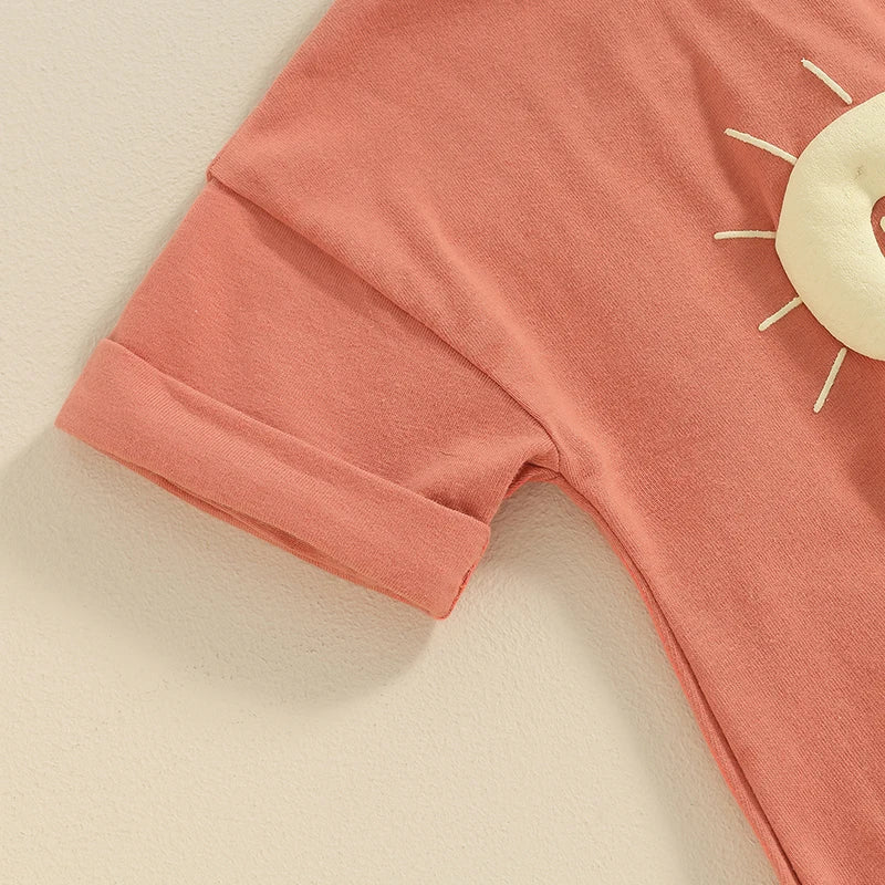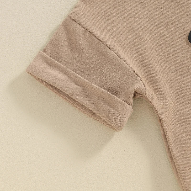 A stylish and practical addition to your little one's wardrobe! With its round neck, short sleeves, and casual style, this jumpsuit is perfect for everyday wear.